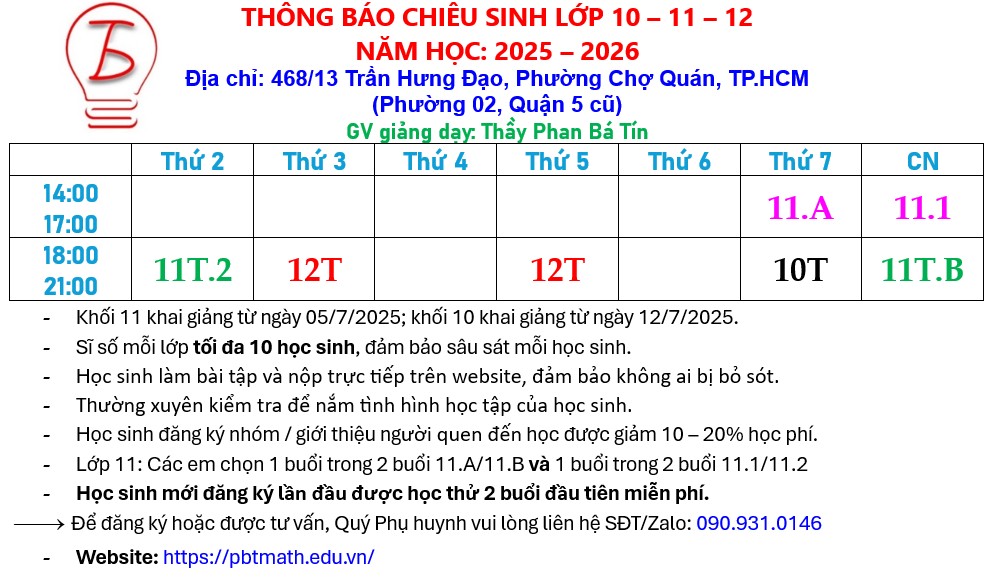 Chuyên giảng dạy toán 10 - 11 - 12